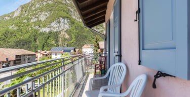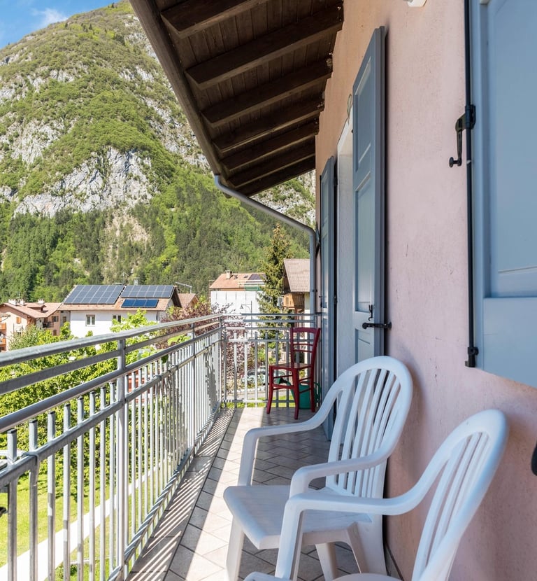 Ogni stanza è arricchita da un terrazzo privato con sedie e tavolino, il luogo perfetto per godersi la colazione o un aperitivo all'aria aperta, mentre si ammira lo splendido panorama circostante. La vista spazia sulle maestose montagne come la Paganella, il Monte Bondone e il Gruppo del Brenta, oltre a regalare uno sguardo sulle incantevoli Valli Giudicarie in direzione Riva del Garda.