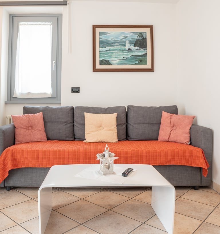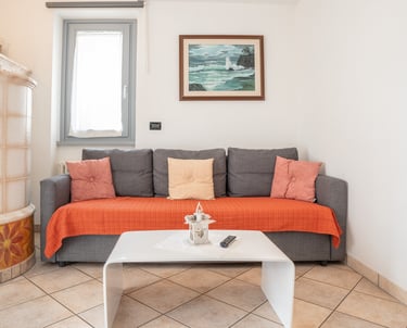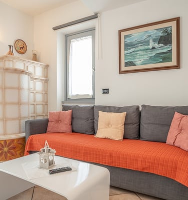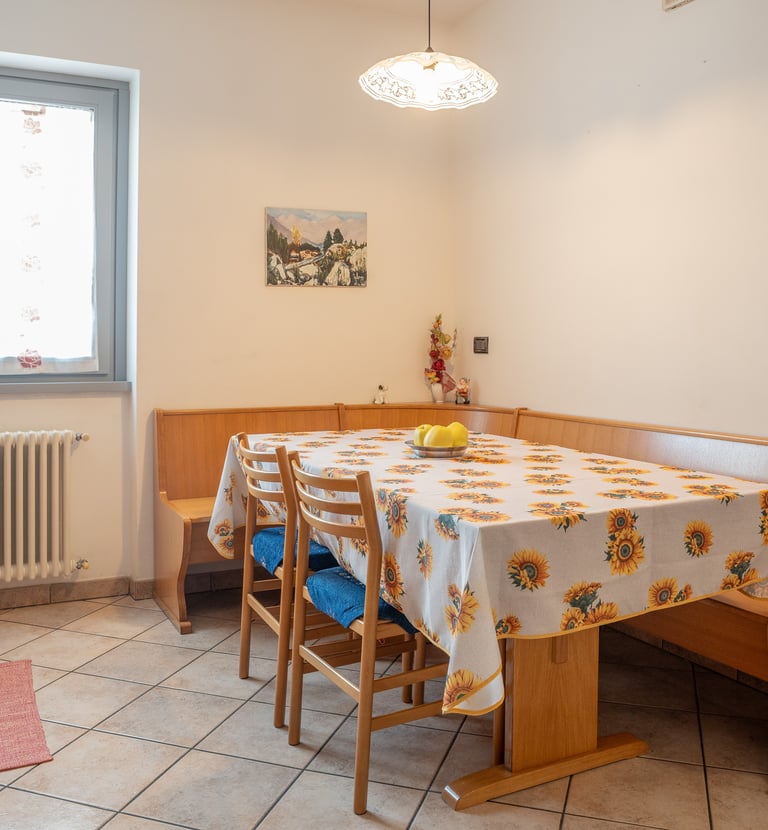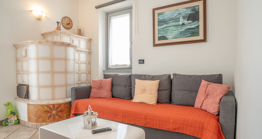 The "Otto" apartment features a cozy double bedroom and a living room with a sofa bed, making it an ideal choice for families or small groups. A standout feature is the traditional Trentino Ole ceramic stove, which adds warmth and authenticity to the space. The bright and spacious kitchen is perfect for preparing your favorite meals, while the private bathroom with a window ensures practicality and comfort.