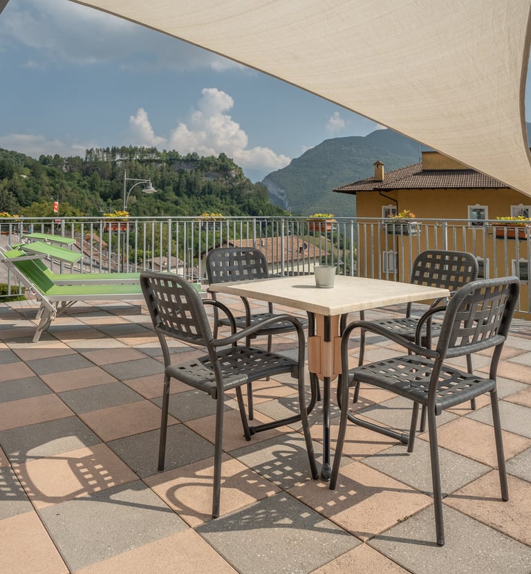 The true gem of this apartment is the 40 sqm terrace, equipped as a solarium, offering a breathtaking and relaxing view of the Giudicarie Valleys and Riva del Garda. This outdoor space is perfect for unwinding and immersing yourself in the stunning Trentino landscape.